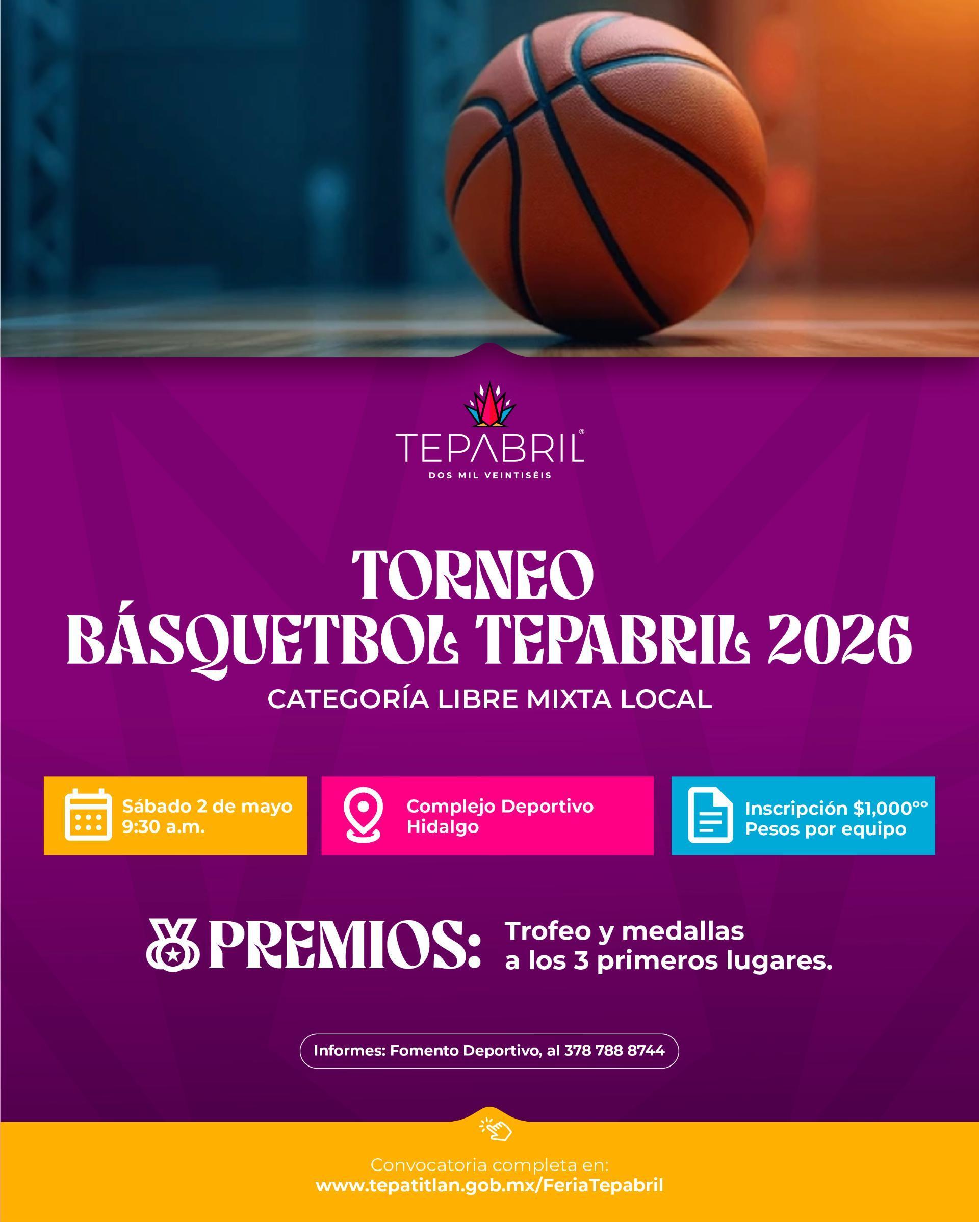 CONVOCATORIA TORNEO LIBRE MIXTA DE BÁSQUETBOL TEPABRIL 2026