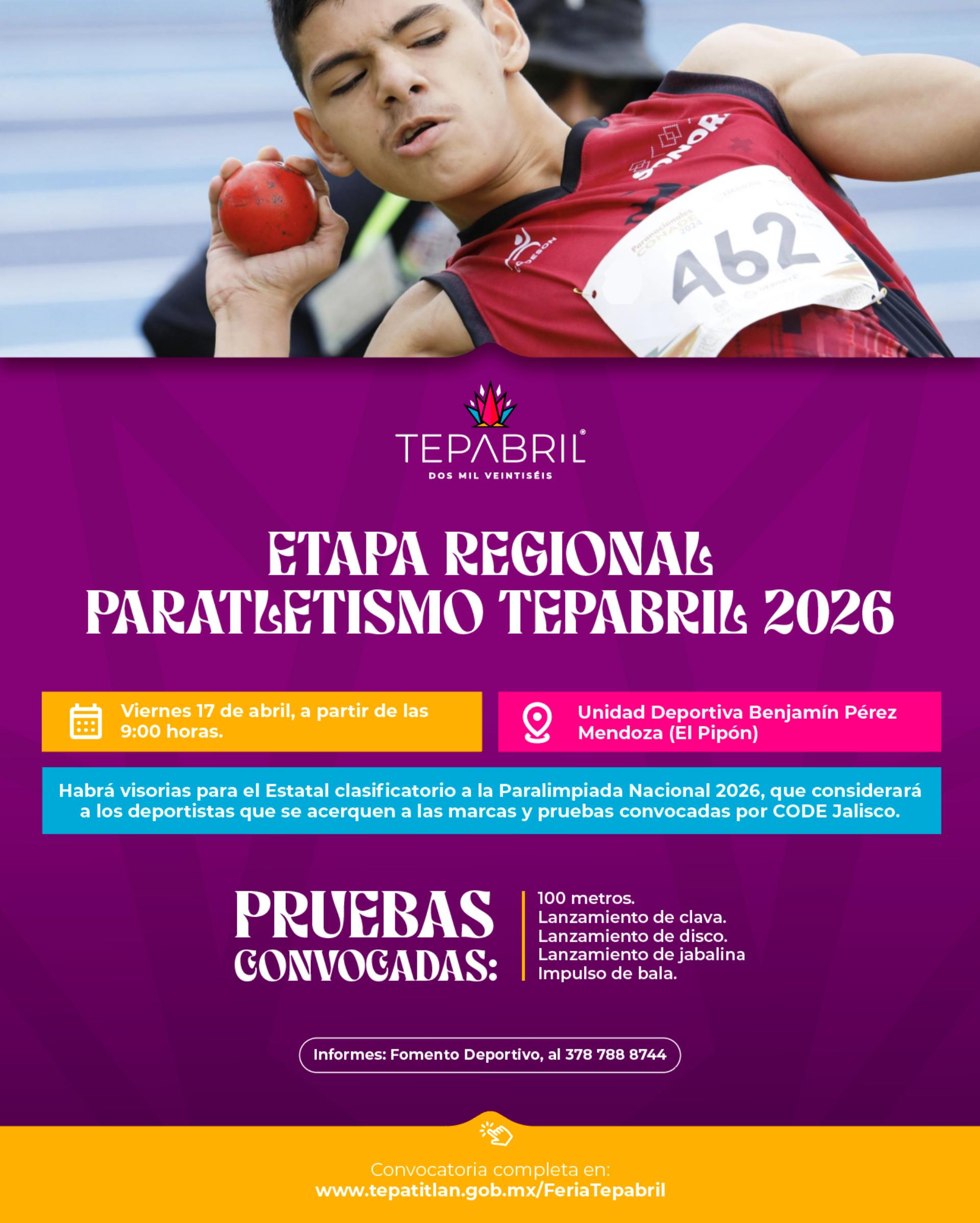 CONVOCATORIA ETAPA REGIONAL PARATLETISMO TEPABRIL 2026